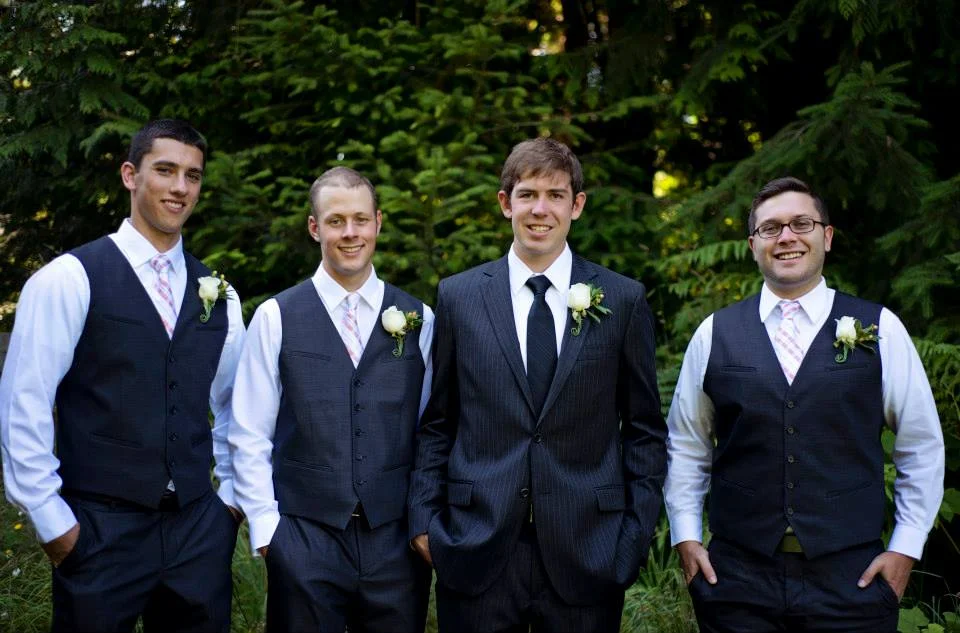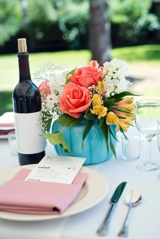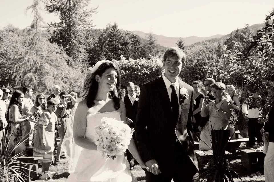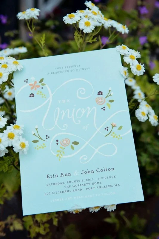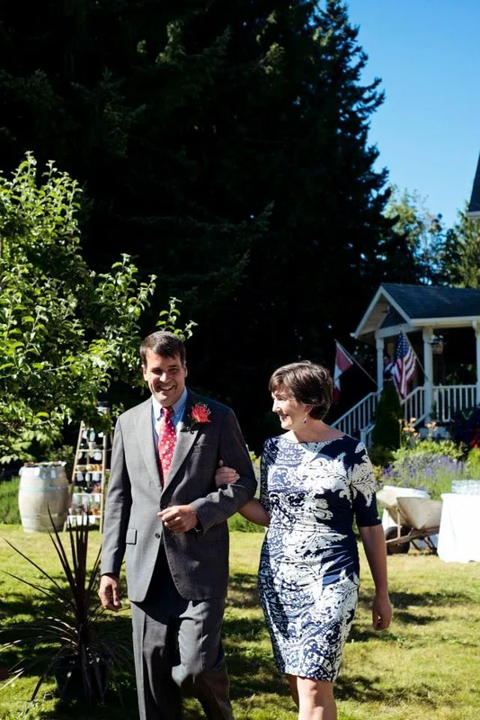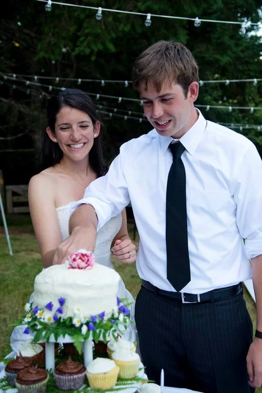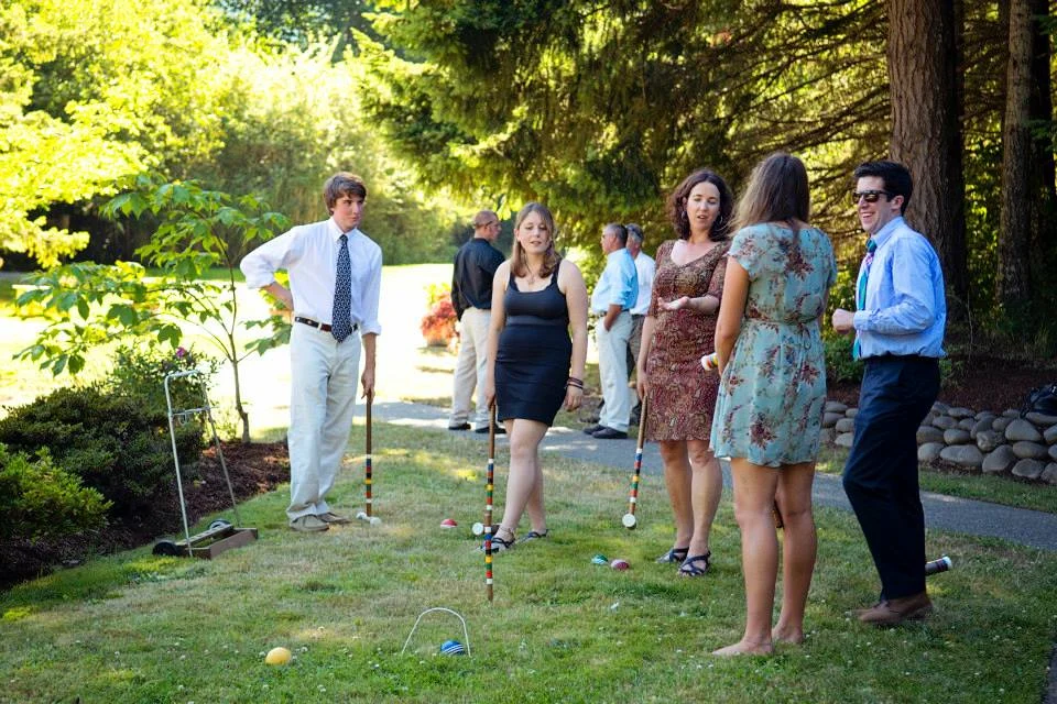 All brides dream of a picture perfect wedding, but for some, the idea of planning it can be very stressful. This was the case with this sweet, soft spoken, geophysicist bride. We were more than happy to help! She gave us a good starting point with a budget, location, and guest list. Once she chose an invitation we took the color scheme and ran with it. The wedding took place at the groom's family home. The ceremony was held in front of the vegetable garden with the Olympic Mountains in the background. Cocktails were served on the lawn among games of croquet. The bride handmade the guest favors (hand thrown pottery) and the groom's sister baked the cupcakes that served as a wedding cake. The flower arrangements were made the day before by the bridesmaids and the groom's sisters. The love and homespun touches that went into this wedding made it oh-so special.