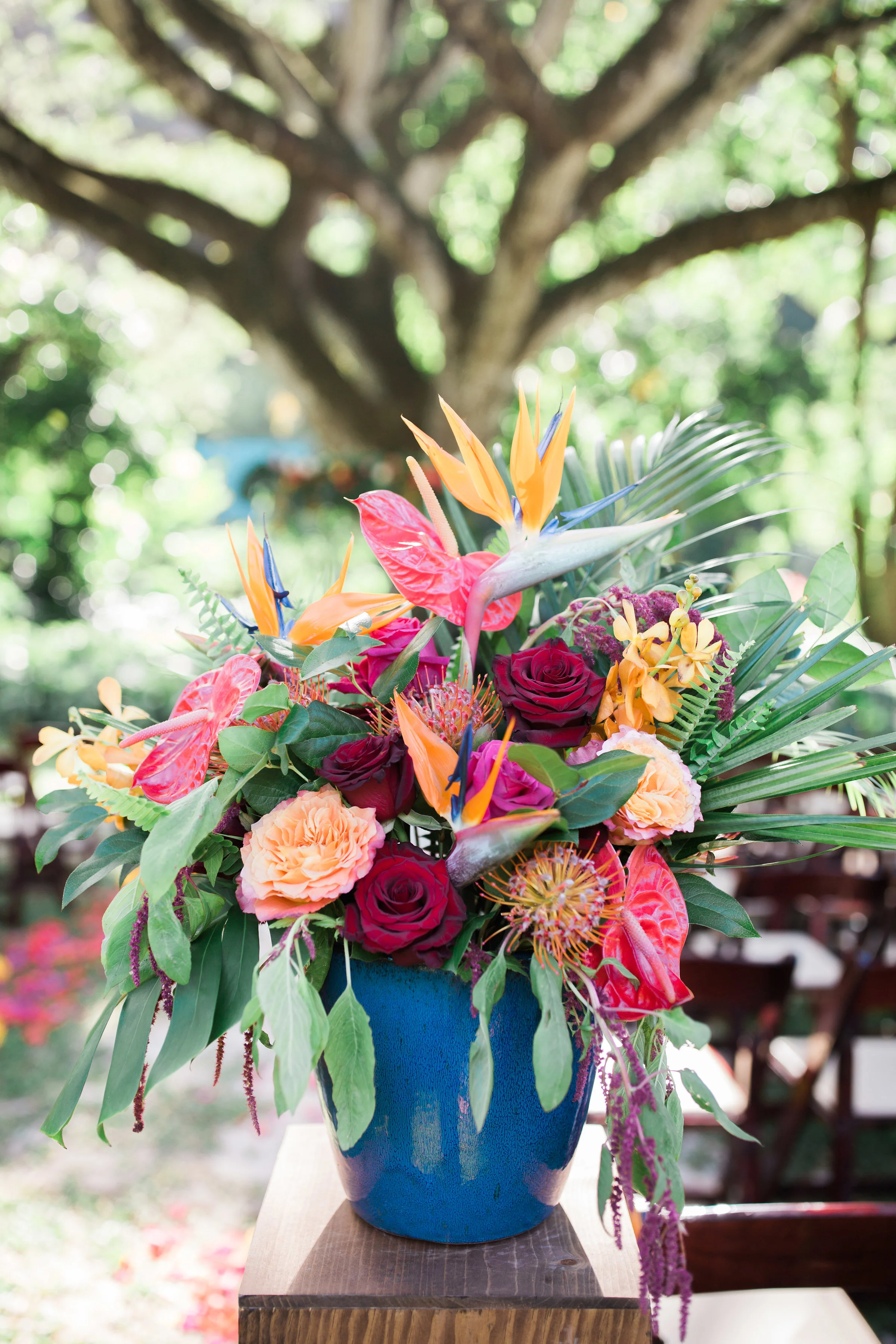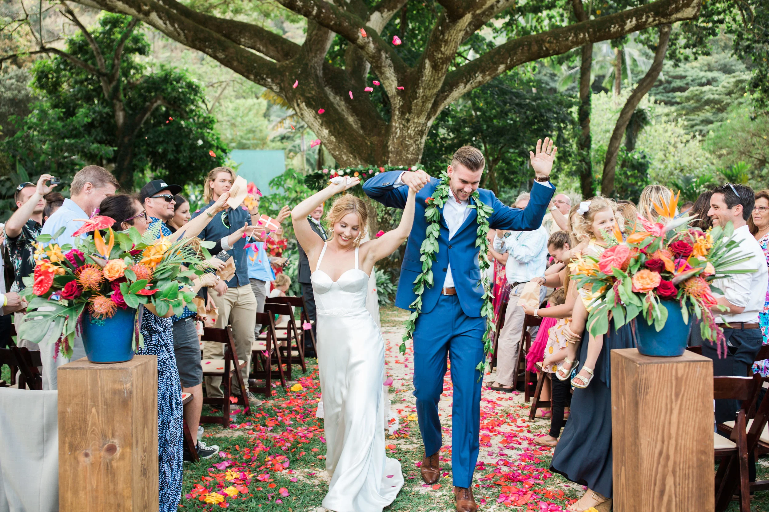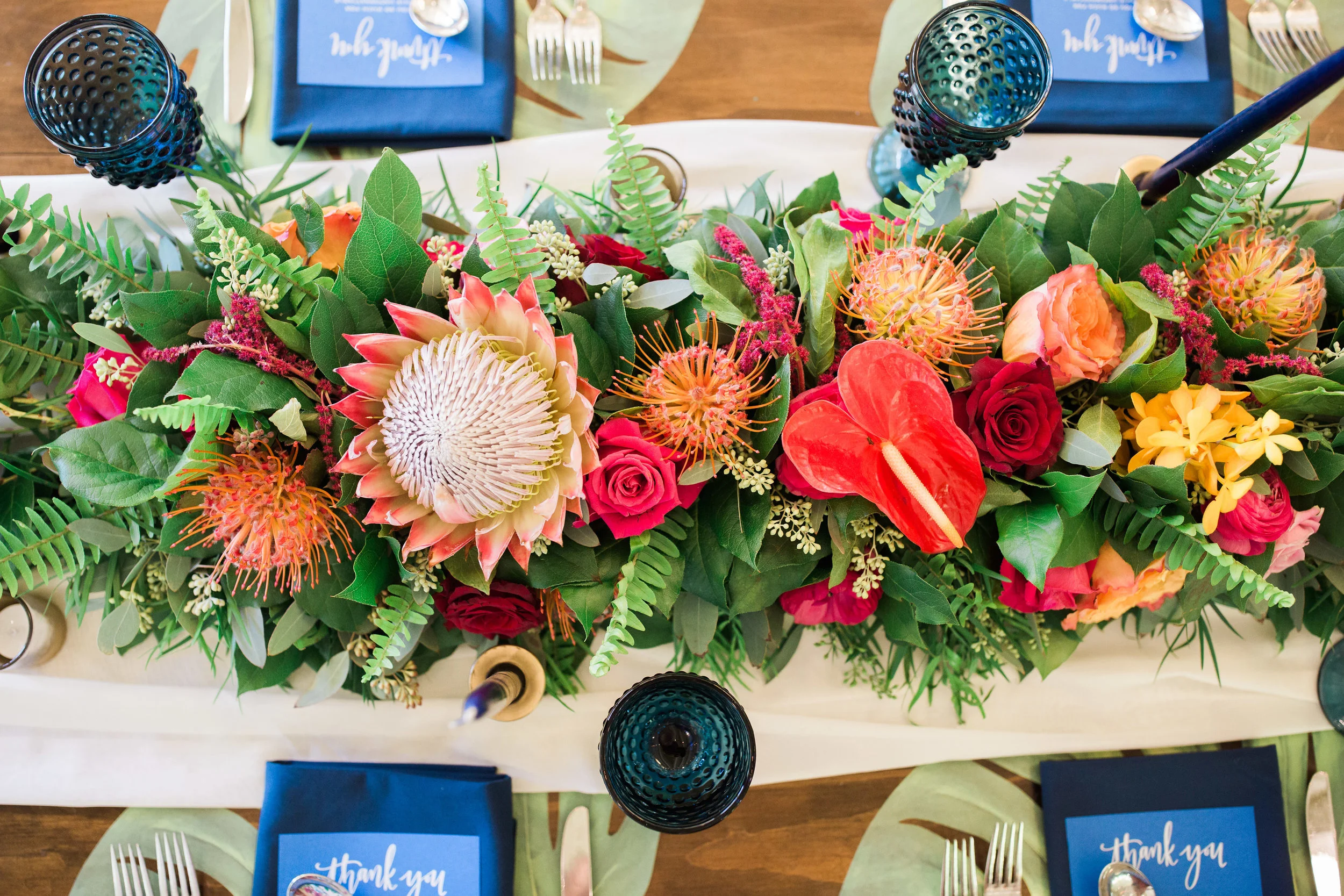 It constantly amazes me how the internet somehow connects me with some off the most fun and charming clients. I remember the evening that this bride and I had a consultation over the phone well. We chatted for almost two hours and continued our conversation via text late into the evening. Clearly we had some major wedding planning chemistry! One of my favorite things about this wedding was that the bride loved color. She wanted to embrace a tropical theme but give it our own more modern twist. I feel like we nailed it with flowers (designed by yours truly), amazing vintage lounge, and the fun table settings. Not only was this wedding gorgeous, but is was full of beautiful emotional moments. I felt so honored to help various family members thoughtfully weave them into the evening's program. I probably say it too much, but being a part of beautiful days like this one make my heart full.