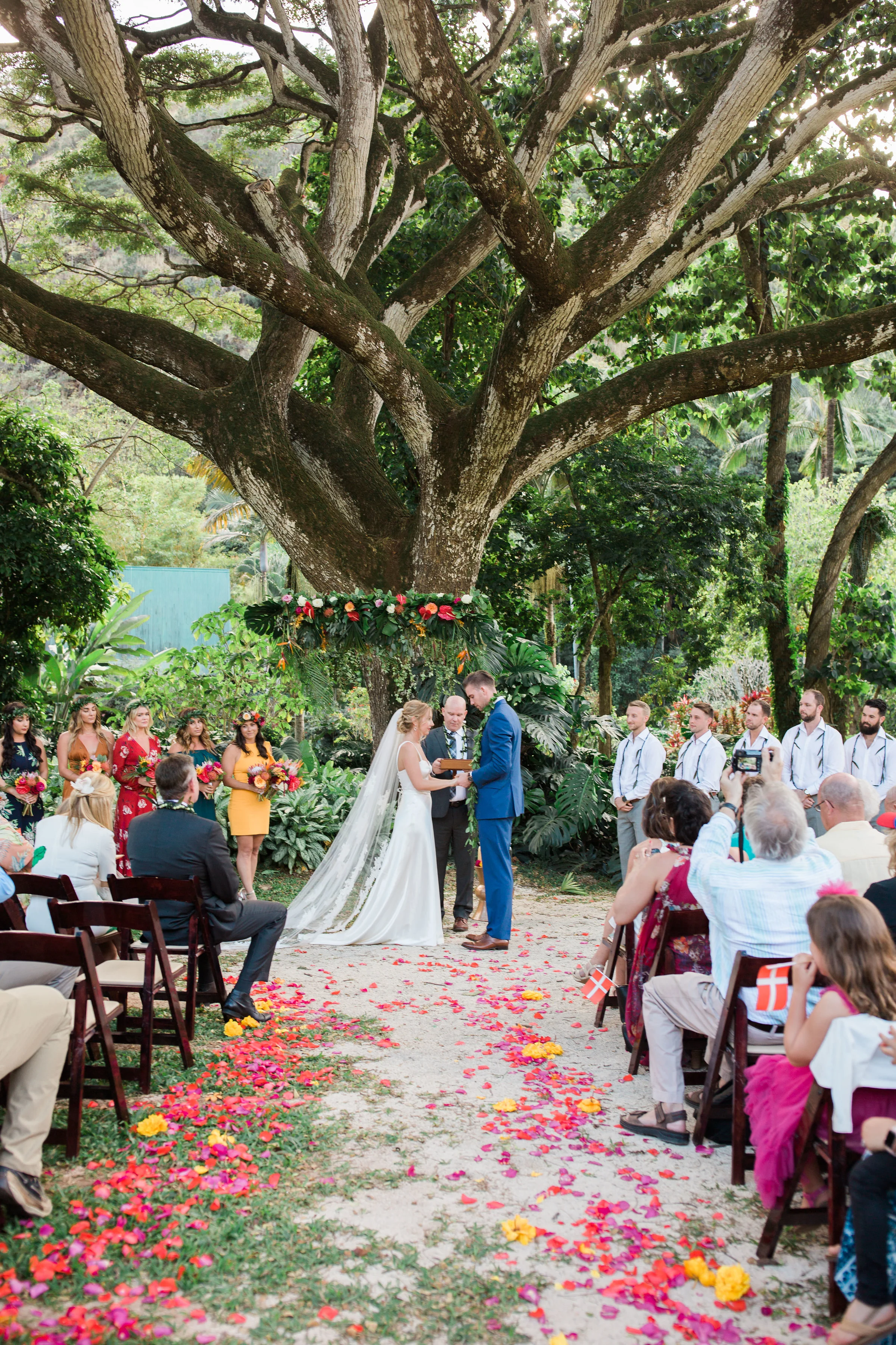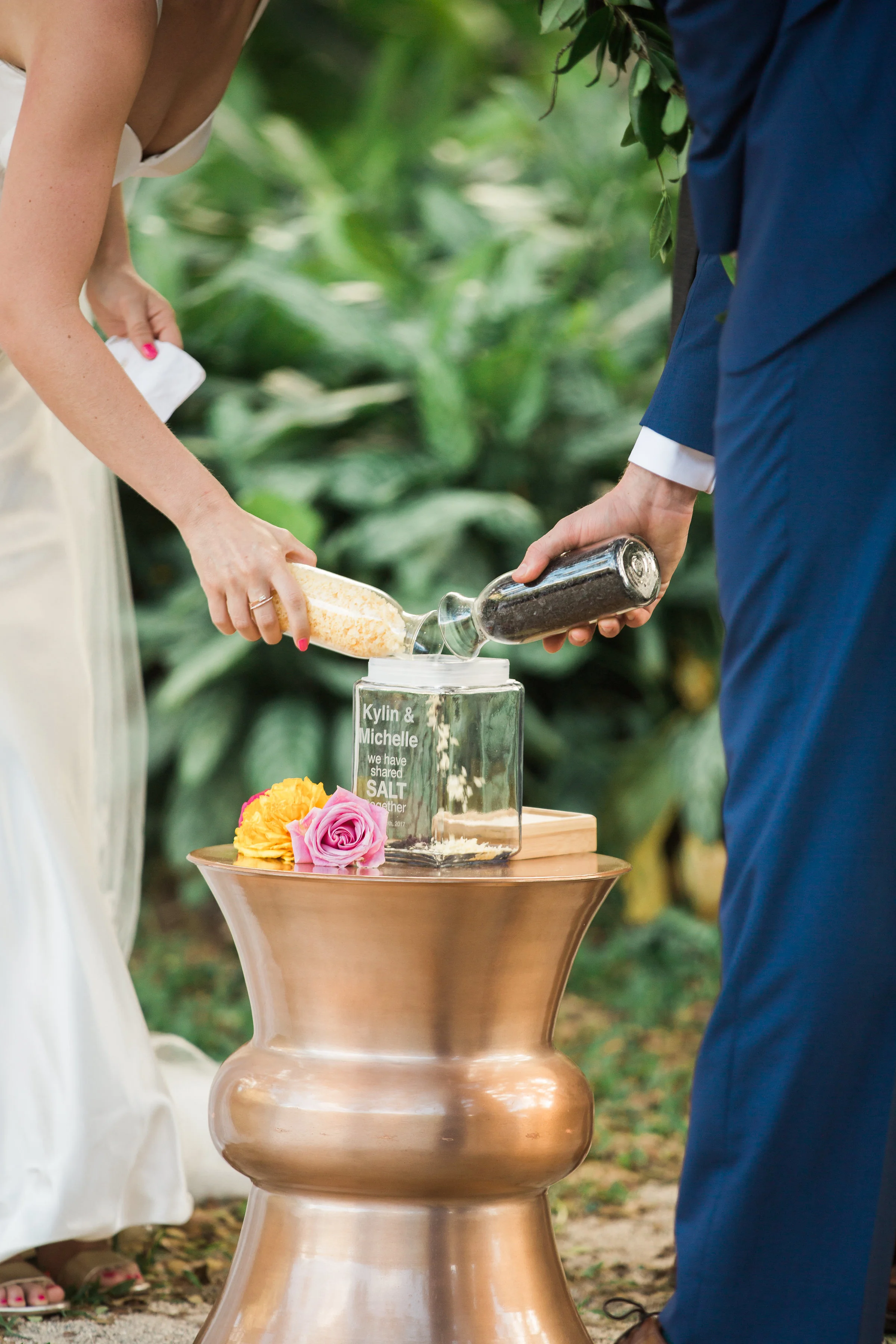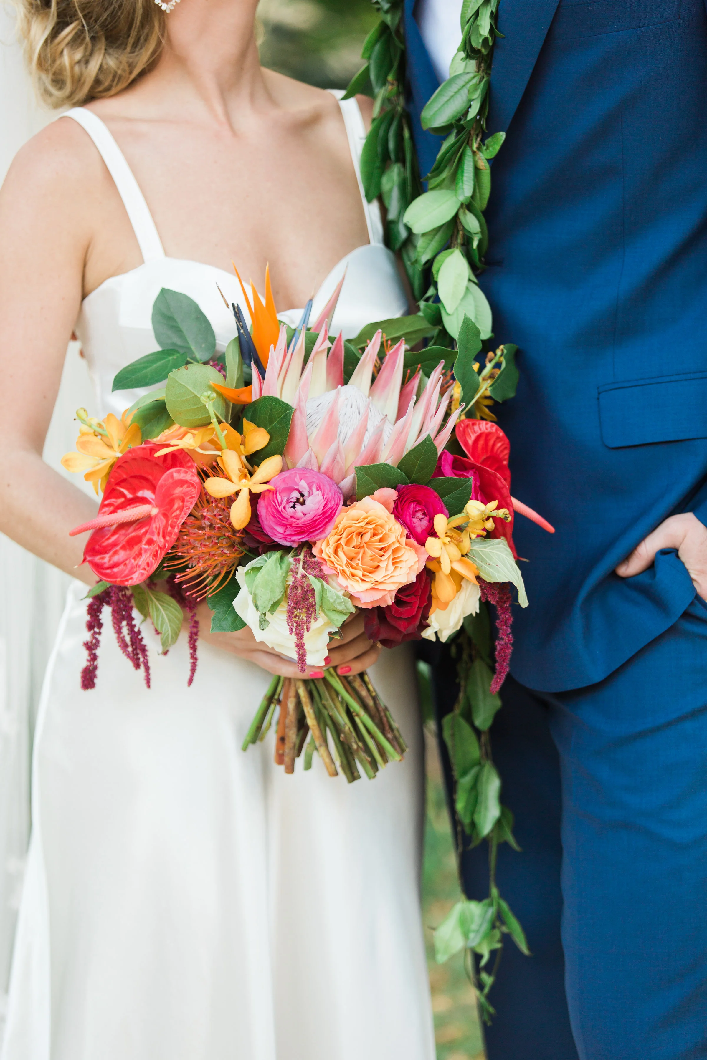 It constantly amazes me how the internet somehow connects me with some off the most fun and charming clients. I remember the evening that this bride and I had a consultation over the phone well. We chatted for almost two hours and continued our conversation via text late into the evening. Clearly we had some major wedding planning chemistry! One of my favorite things about this wedding was that the bride loved color. She wanted to embrace a tropical theme but give it our own more modern twist. I feel like we nailed it with flowers (designed by yours truly), amazing vintage lounge, and the fun table settings. Not only was this wedding gorgeous, but is was full of beautiful emotional moments. I felt so honored to help various family members thoughtfully weave them into the evening's program. I probably say it too much, but being a part of beautiful days like this one make my heart full.