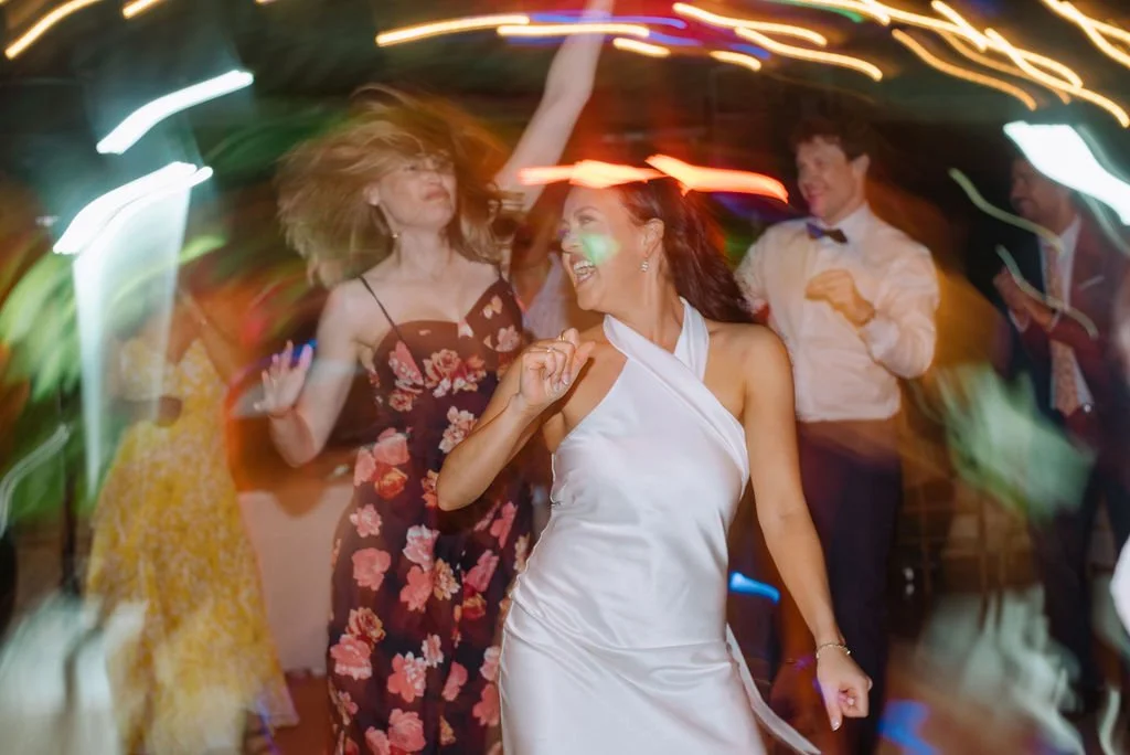 The bride’s parents surprised the couple with recorded video toasts that the groom’s family in France (who could not travel internationally yet) had made for the couple. The night ended with everyone on the dancefloor until the club closed.