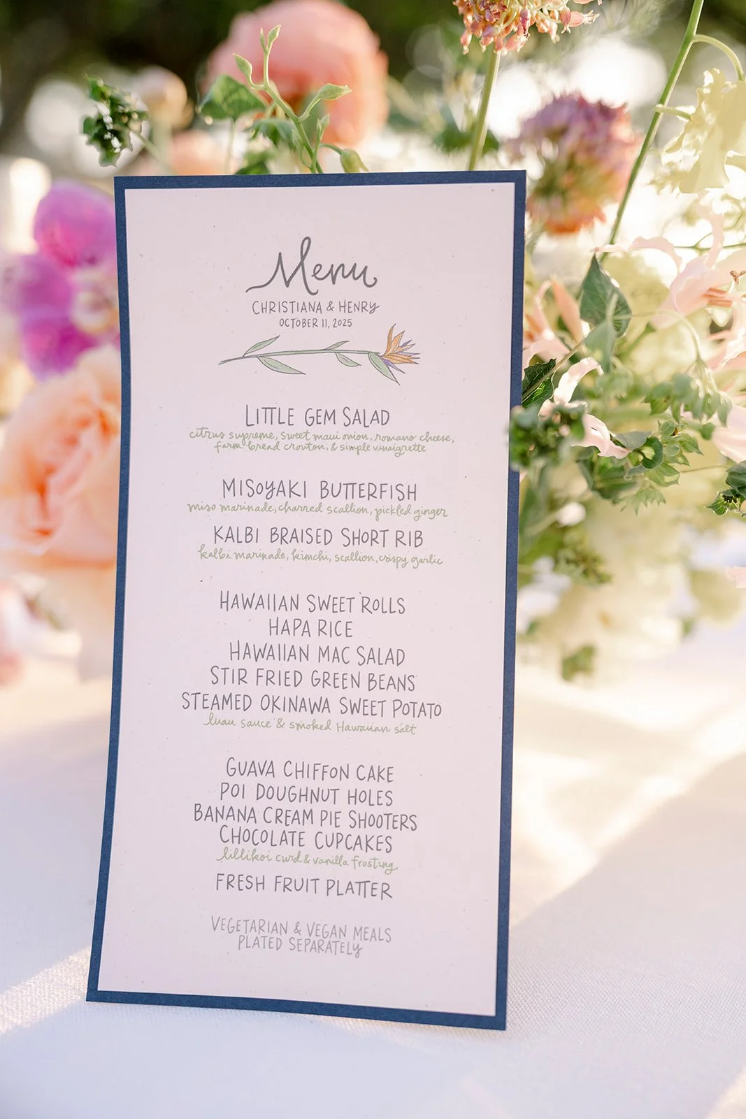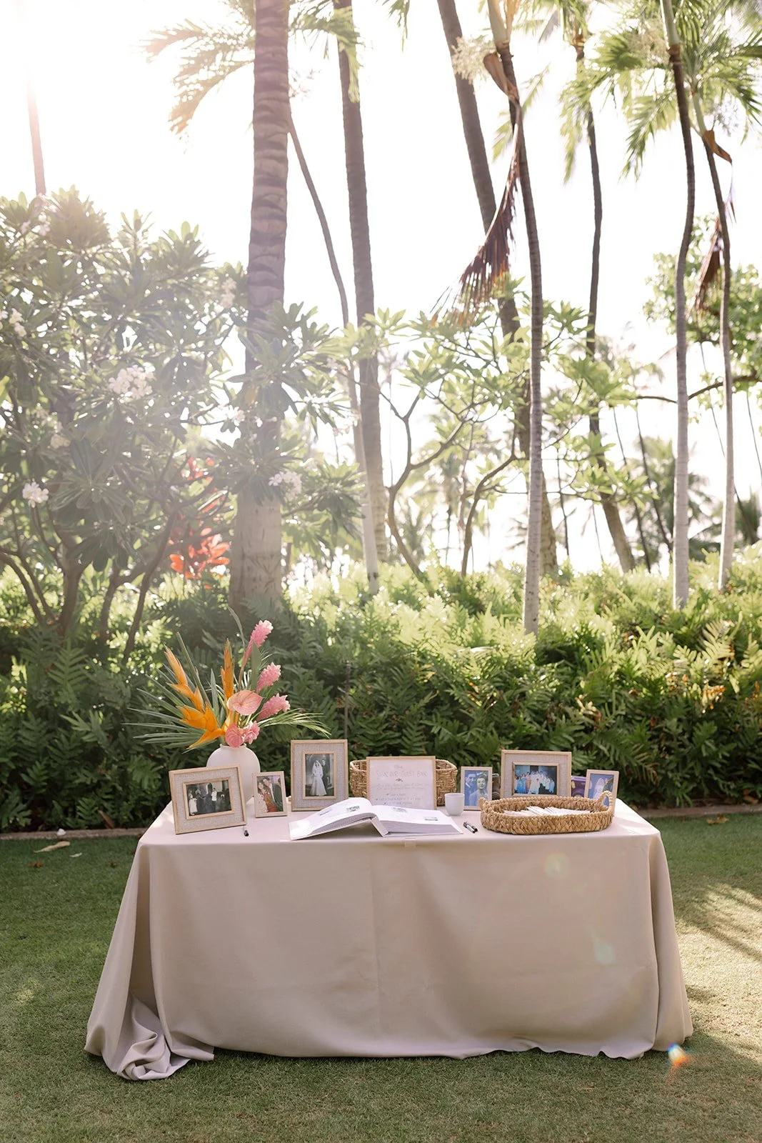 Their ceremony was both timeless and sentimental. Christiana made her entrance wearing her mother’s wedding dress, creating a heartwarming generational connection that moved everyone in attendance. Surrounded by artfully arranged florals and the natural beauty of Oahu’s coastline, the moment felt both intimate and iconic.