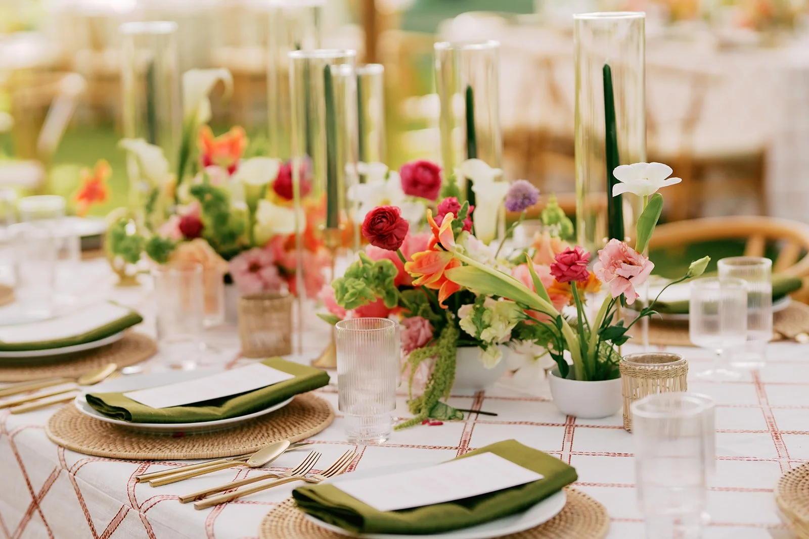 For example, a couple who describes their wedding as romantic might lean into candlelight, soft floral arrangements, and a venue with an intimate atmosphere. A couple who wants colorful may invest in vibrant floral designs, specialty linens, or statement signage that sets a lively tone. For a timeless aesthetic, the focus might be on a classic venue, elegant tableware, and high-quality but minimal florals that create a refined look.