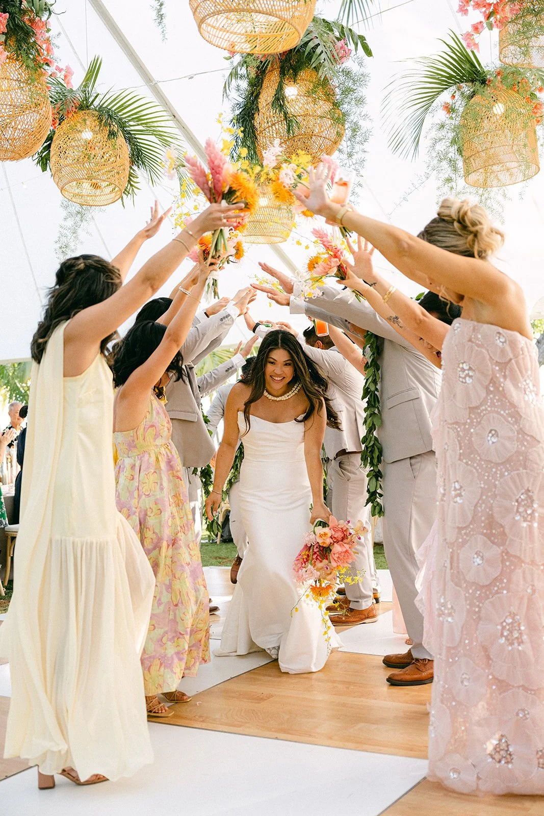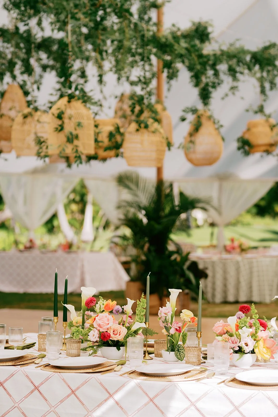 This can create a gap between what you love online and what feels possible within your own budget. A floral installation that looks effortless in a photo may require dozens of hours of labor and thousands of stems. Specialty rentals or custom signage that seem like small details in an image can actually take up a significant portion of a budget, especially when they have to be shipped to Hawaii.
