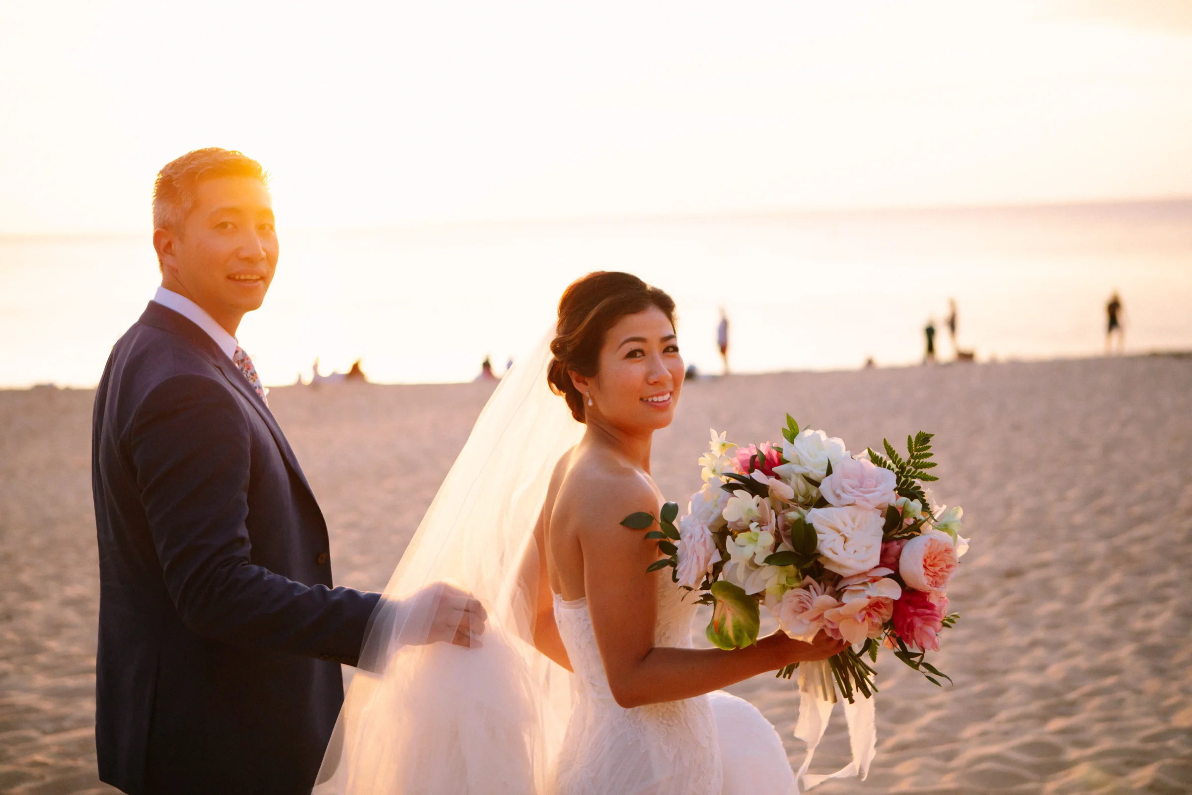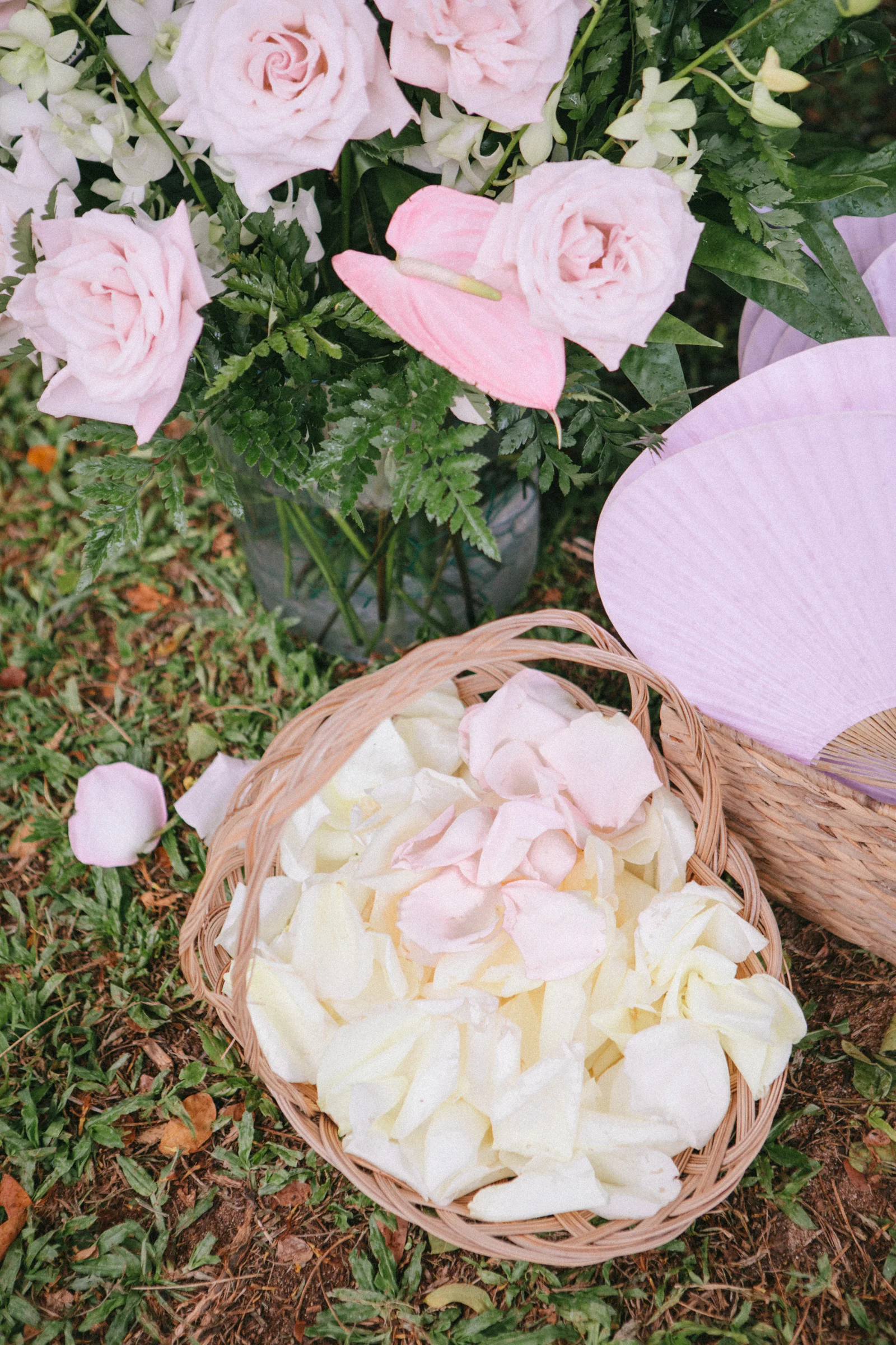 It seems a bit funny calling a wedding with 200+ guests “intimate”, but that’s exactly how the day felt! This couple put so much thought and intention into their day, and it was so noticeable. The bride, who grew up in Hawaii, wanted the day to be fresh and tropical, but more of a romantic/sweet/cheerful tropical than a traditional tropical. This couple included a sake ceremony during their wedding ceremony to honor their heritage and incorporated pictures of their beloved late dog Bailey throughout the reception. We’re telling you, it was all so thoughtful and personal! In addition, the bride’s dad gave a super heartfelt speech about their family’s history and how they came to Hawaii and made it their home. It was such a cool way to tie together all of the intimate details of the day! And to end the night, the couple wanted to open a secret speakeasy bar to add some fun to the already raging dance party. This day was just plain fun, and we definitely kept the guests on their toes with all the fun little surprises!