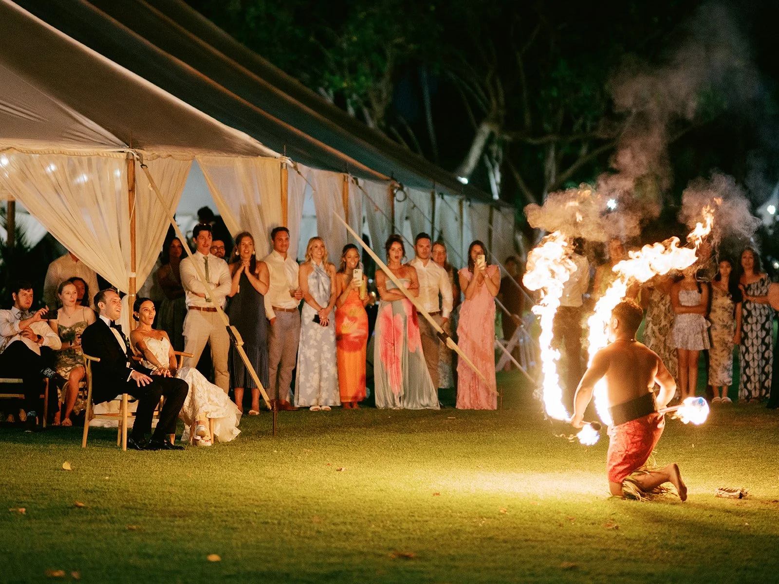If you want to truly surprise them, consider adding a cultural or entertainment twist. A graceful hula performance during cocktail hour, fire-knife dancers who light up the reception, or live Hawaiian musicians who appear unexpectedly during dinner are unforgettable touches. These kinds of experiences make your Hawaii destination wedding feel extra memorable.